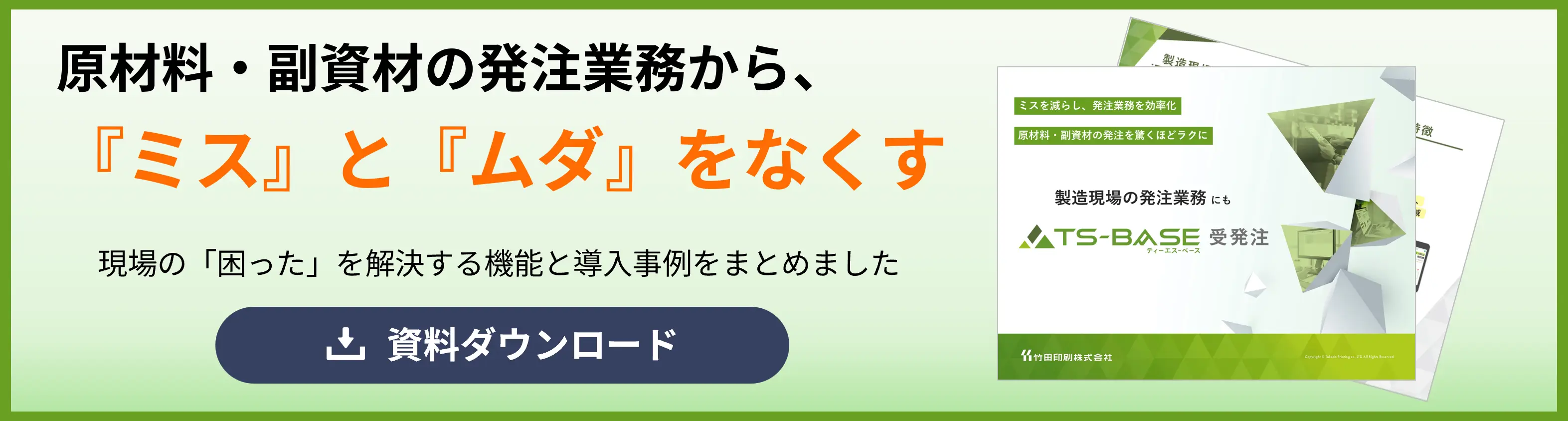 ▼「TS-BASE 受発注」で製造現場の発注業務を効率化。今すぐ資料をダウンロード